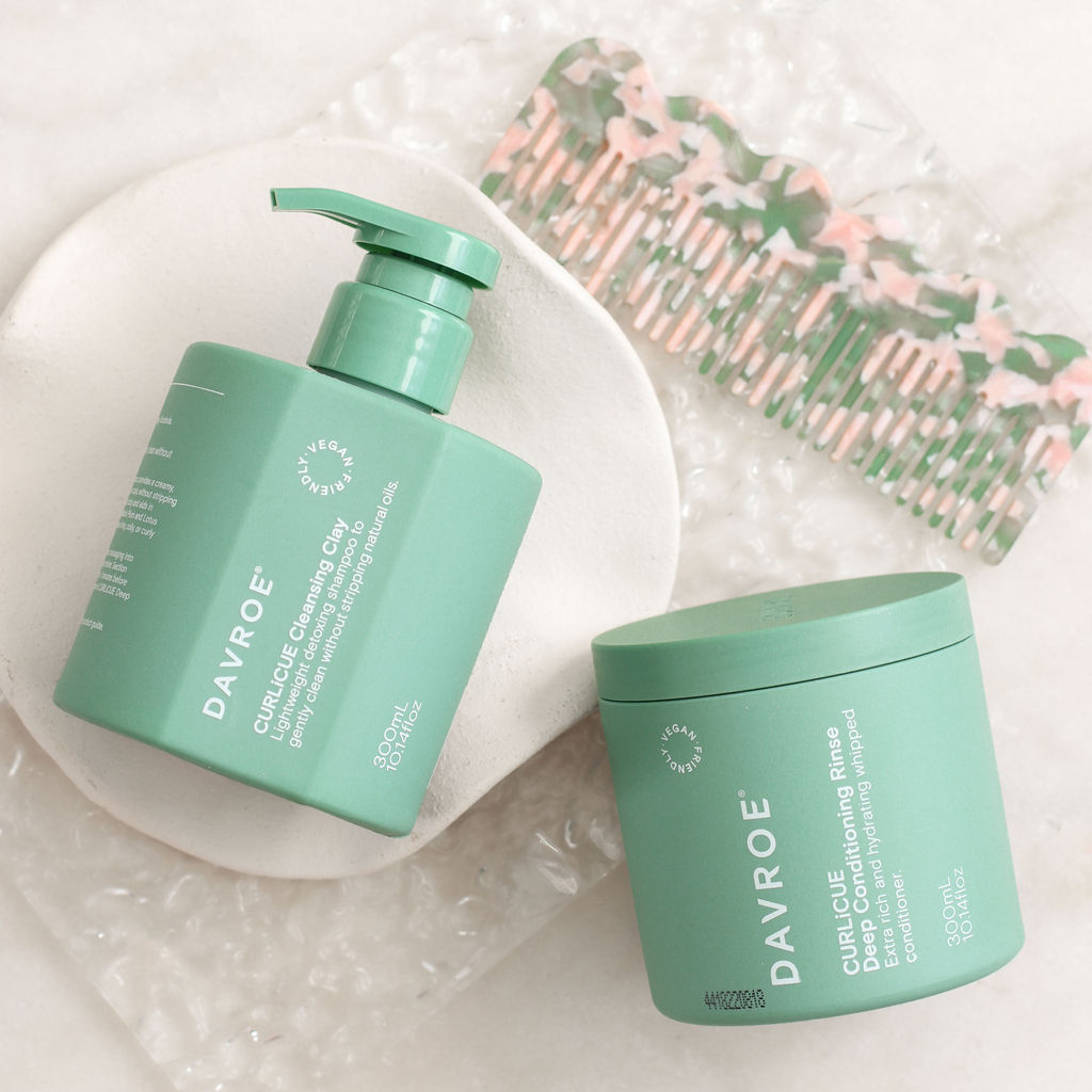 Em seguida, aplique o Curlicue Hydrating Oil e o Balm para Cachos da Davroe.