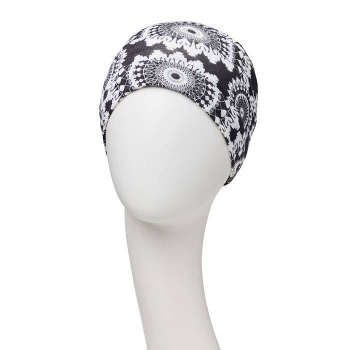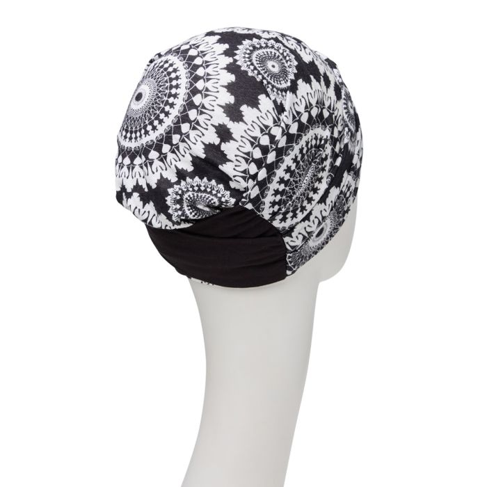 Este turbante Beatrice é feito de linho, uma escolha óbvia para os meses quentes da primavera e do verão. O linho é extremamente confortável, leve e respirável, e tem um efeito refrescante, mantendo o couro cabeludo fresco e arejado o dia todo. As peças de tricô serão um grande sucesso na primavera/verão. O crochê branco sobre a base preta do turbante é a nossa interpretação dessa tendência, resultando em um visual elegante e encantador.