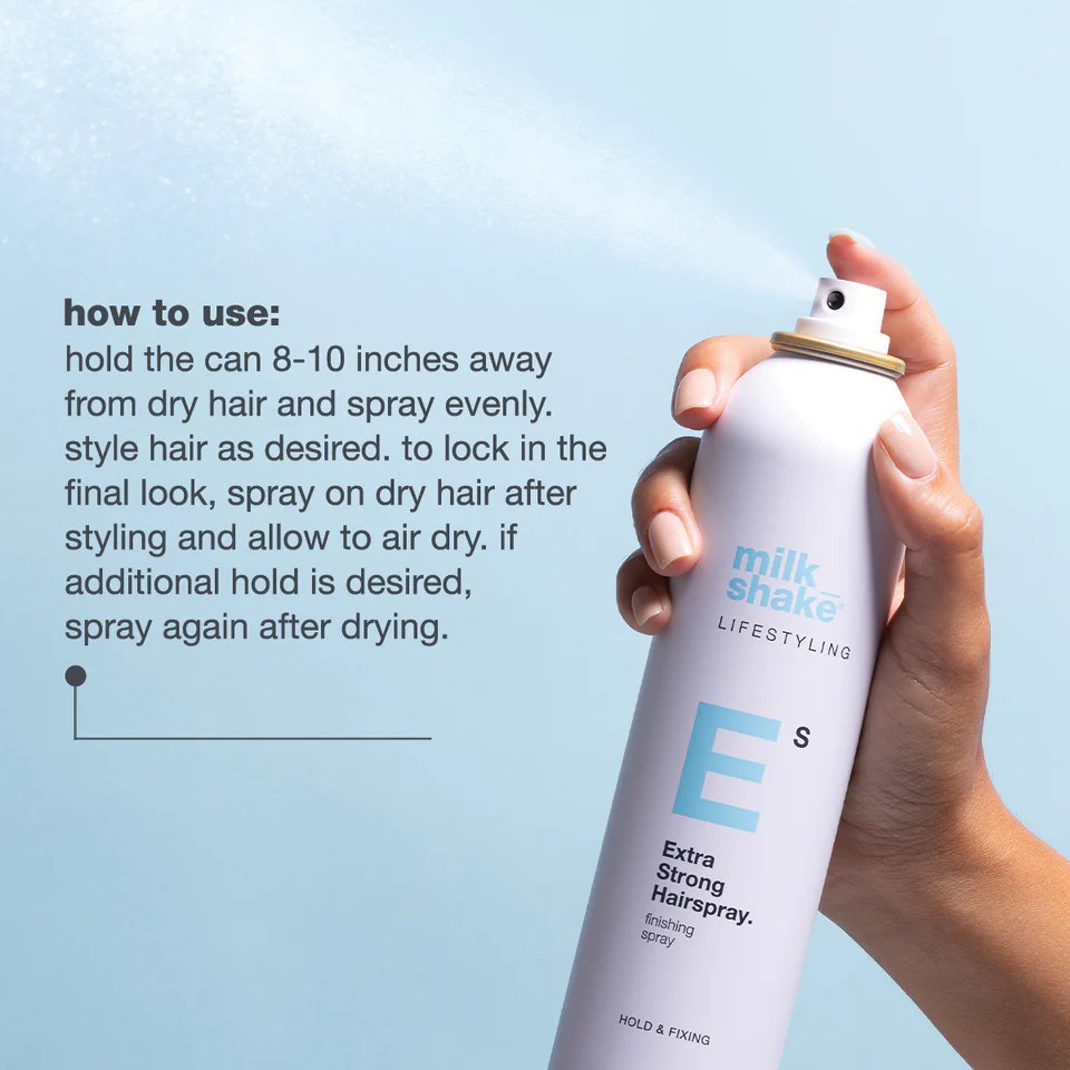 segure a lata a uma distância de 20 a 25 cm do cabelo seco e pulverize uniformemente.