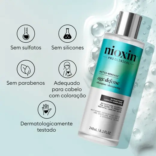 Para obter os melhores resultados, aplicar em seguida o Nioxin Age Defense Condicionador e o Nioxin Age Defense Sérum.