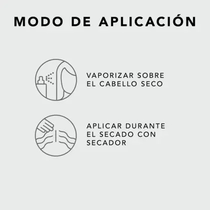 Em cabelo seco: Vaporizar no cabelo antes de secar com o secador para conseguir mais corpo e um movimento natural e perfeito.