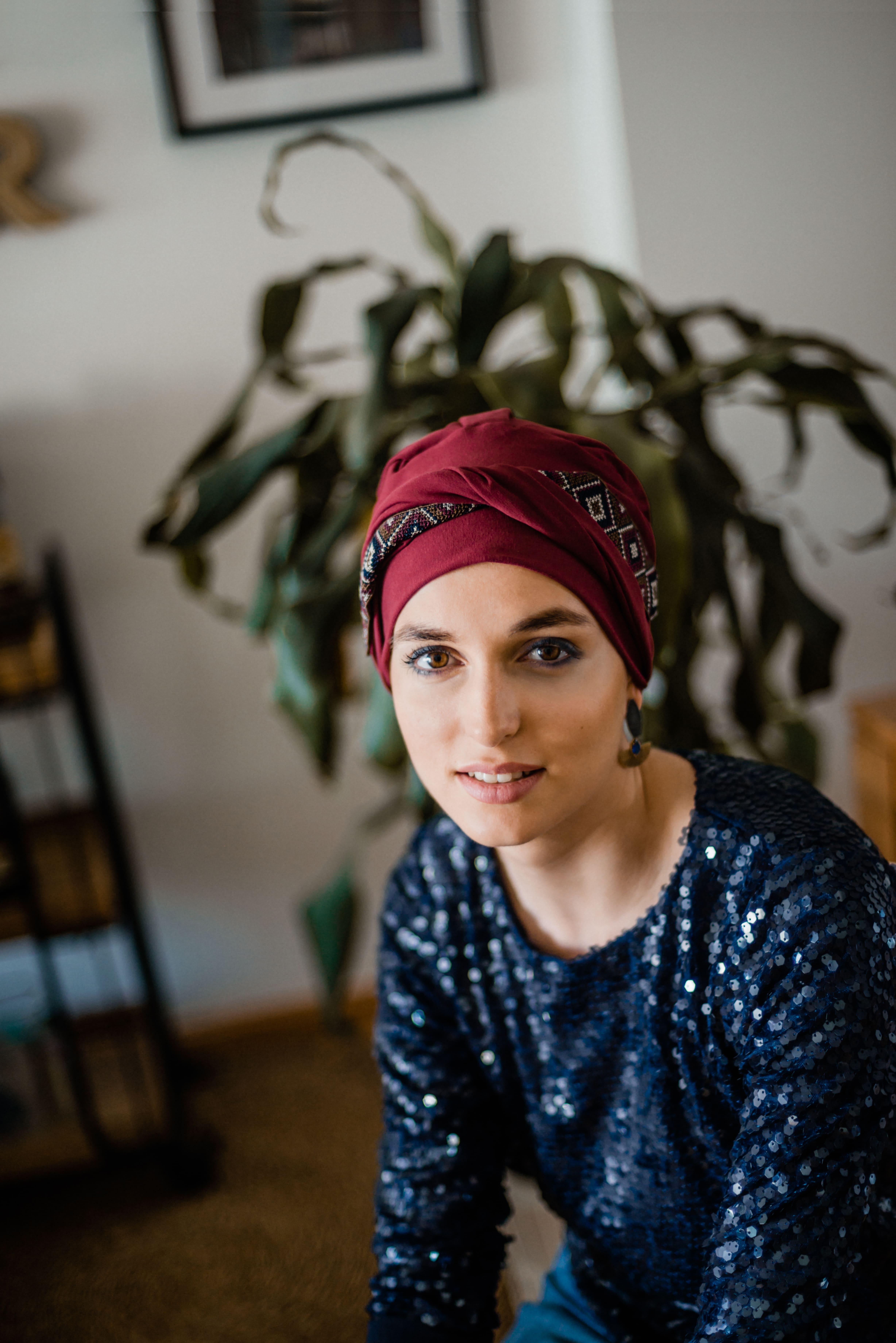 Turbante Modelo Cosy Padrão Maya Granate